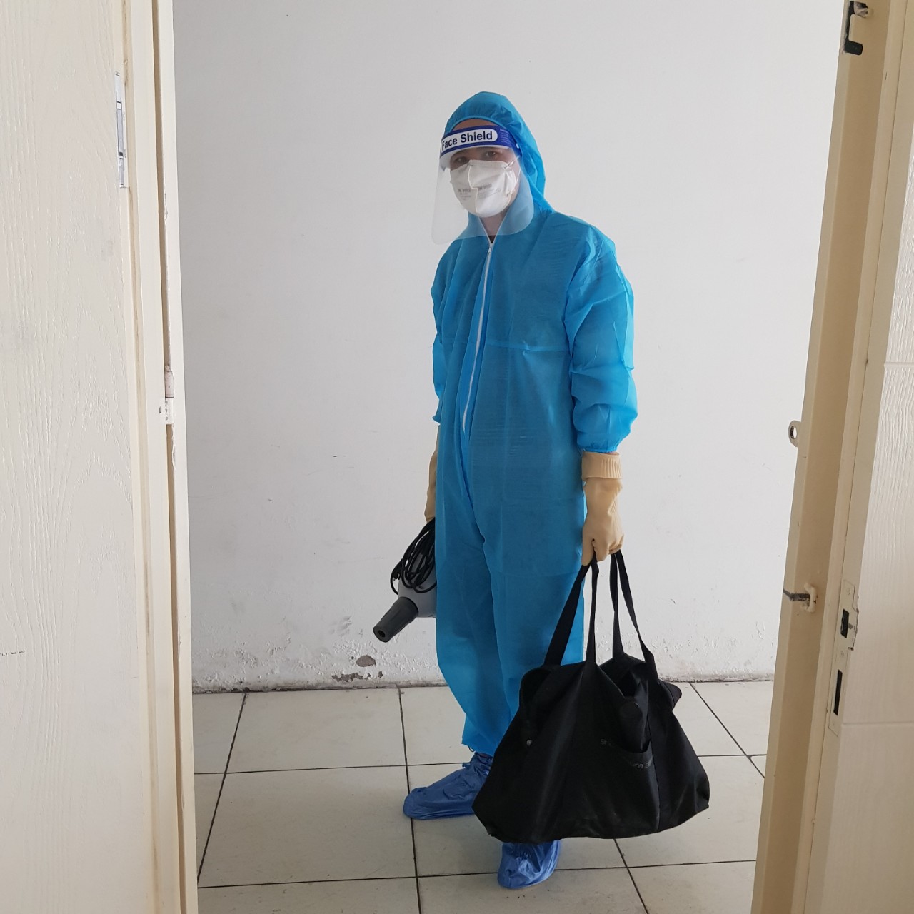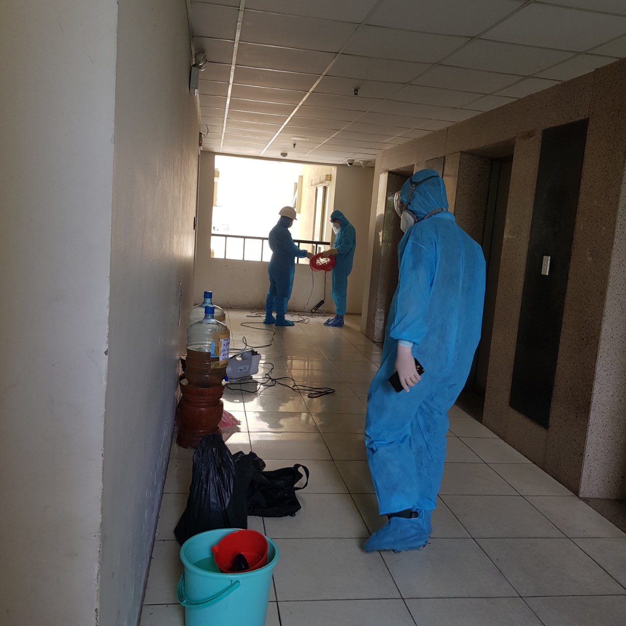 Hình ảnh đội đang tiến hành khử trùng tại chung cư Quân khu 7, Quận 12